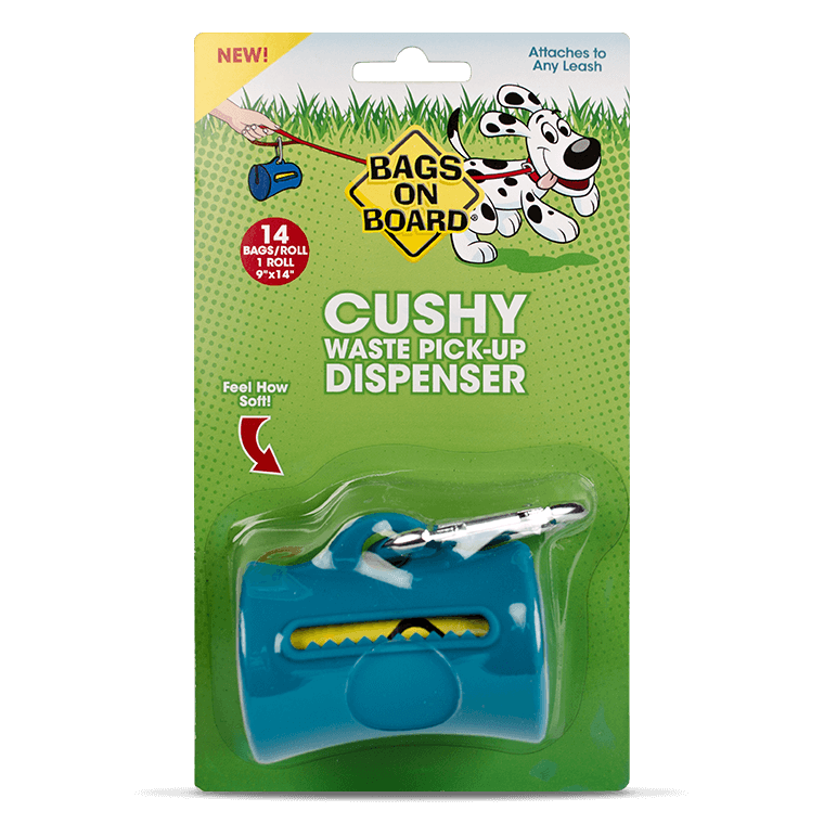 - Bags on Board Cushy Dog Waste Bag Dispenser makes picking up after your dog easy and convenient.