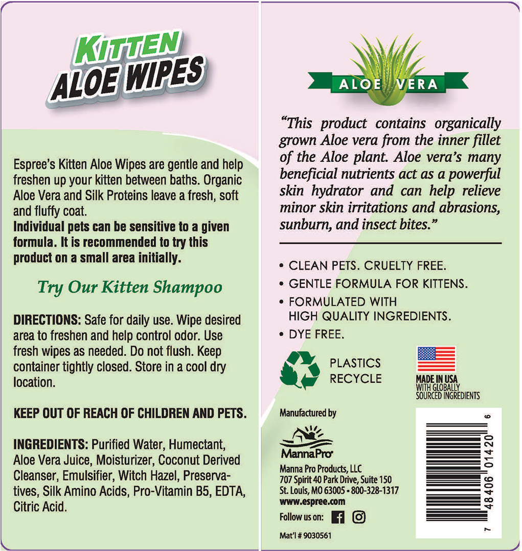 • Espree Kitten Aloe Wipes are gentle and help freshen up your kitten between baths