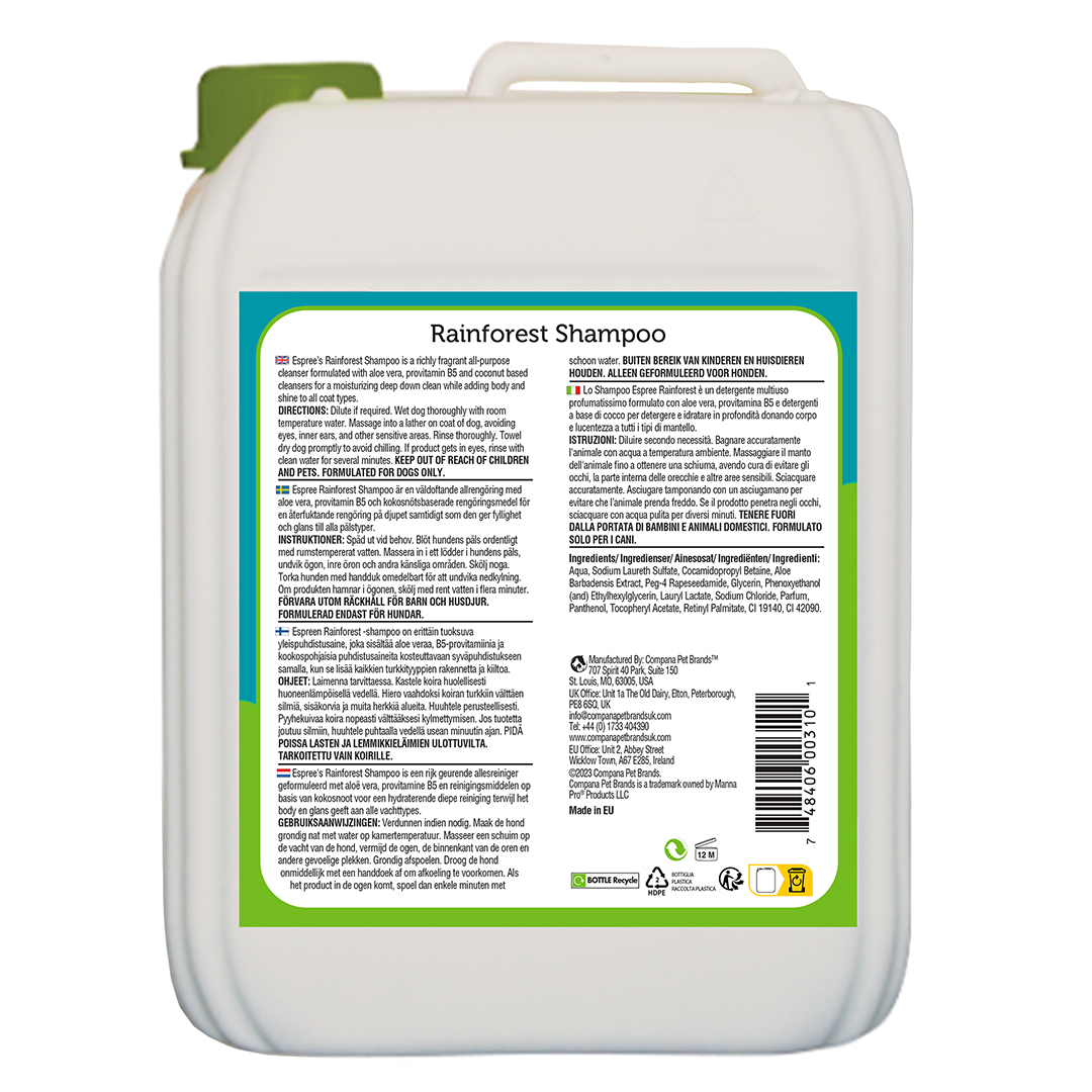 - Espree’s Rainforest Shampoo is formulated with Aloe Vera, Provitamin B5 & Coconut Based Cleansers