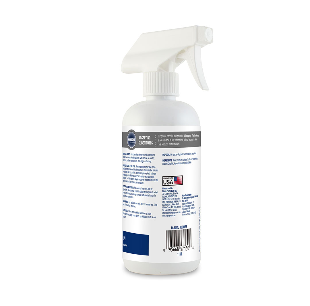 MicrocynAH® Wound & Skin Care Spray is formulated with the patented and scientifically proven Microcyn technology and is intended for cleansing minor wounds and skin irritations in horses, cattle, cats, dogs and other animals