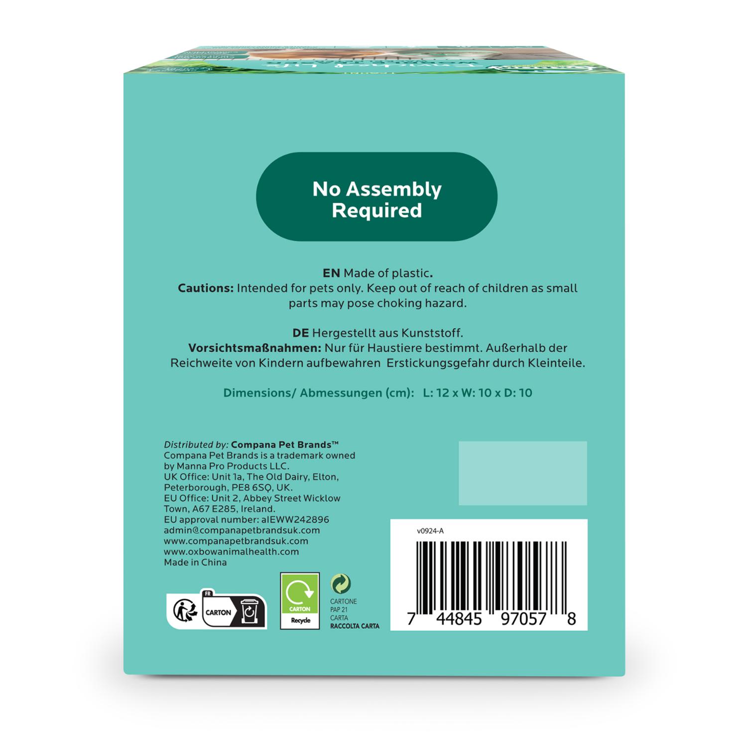 The Oxbow Enriched Life Wobble Teaser is an interactive feeding toy designed to engage small animals. By combining mealtime with play, it promotes both mental and physical stimulation, enhancing your pet’s overall wellbeing. Incorporating the Wobble Teaser can help prevent boredom, promote natural foraging instincts and provide both mental and physical enrichment, contributing to a healthier and happier pet. Engaging way to feed your small animal ? Adjustable opening to control flow.