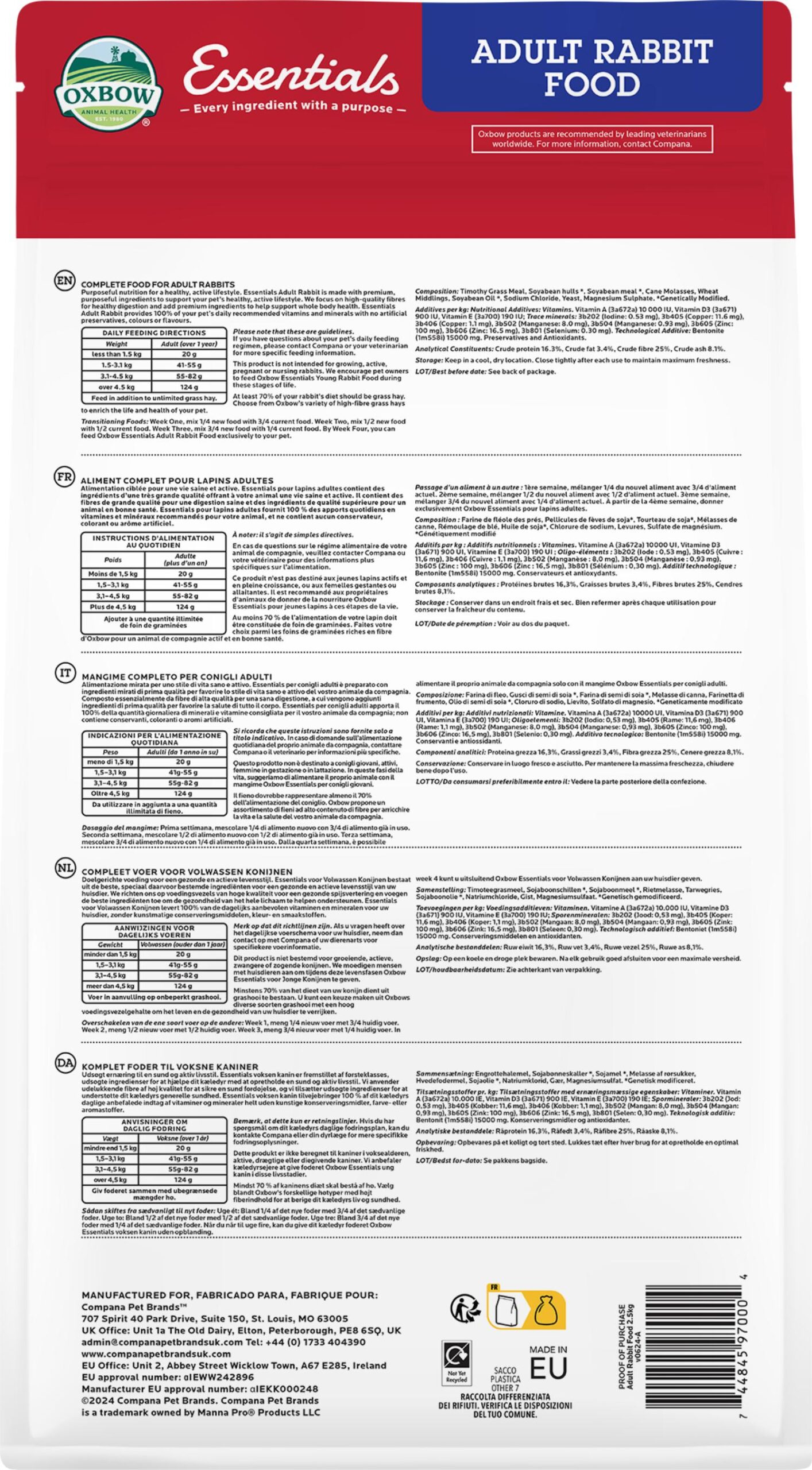 Oxbow Essentials Adult Rabbit – 2.5kg