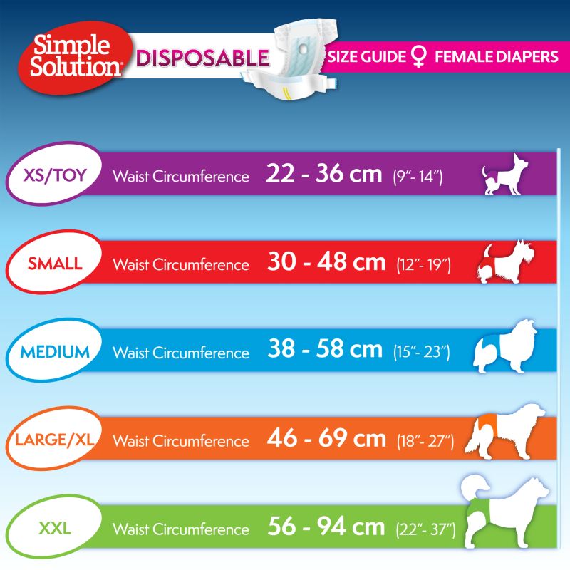 • ADJUSTABLE FIT: Simple Solution Dog nappies are suitable for medium female dogs weighing 11–23kg with a waist size of 38-58 cm.