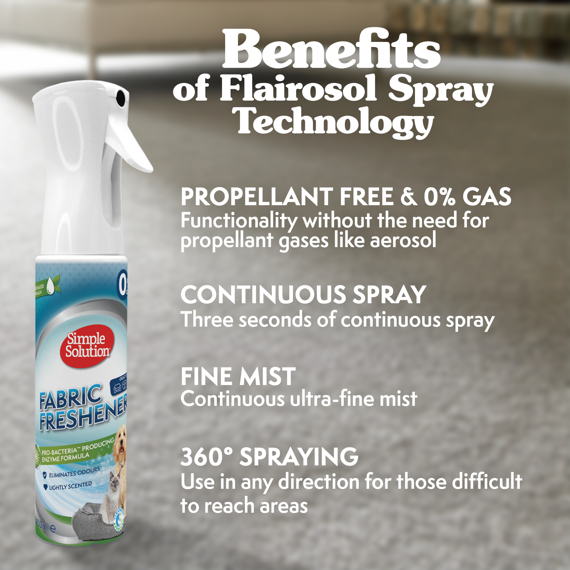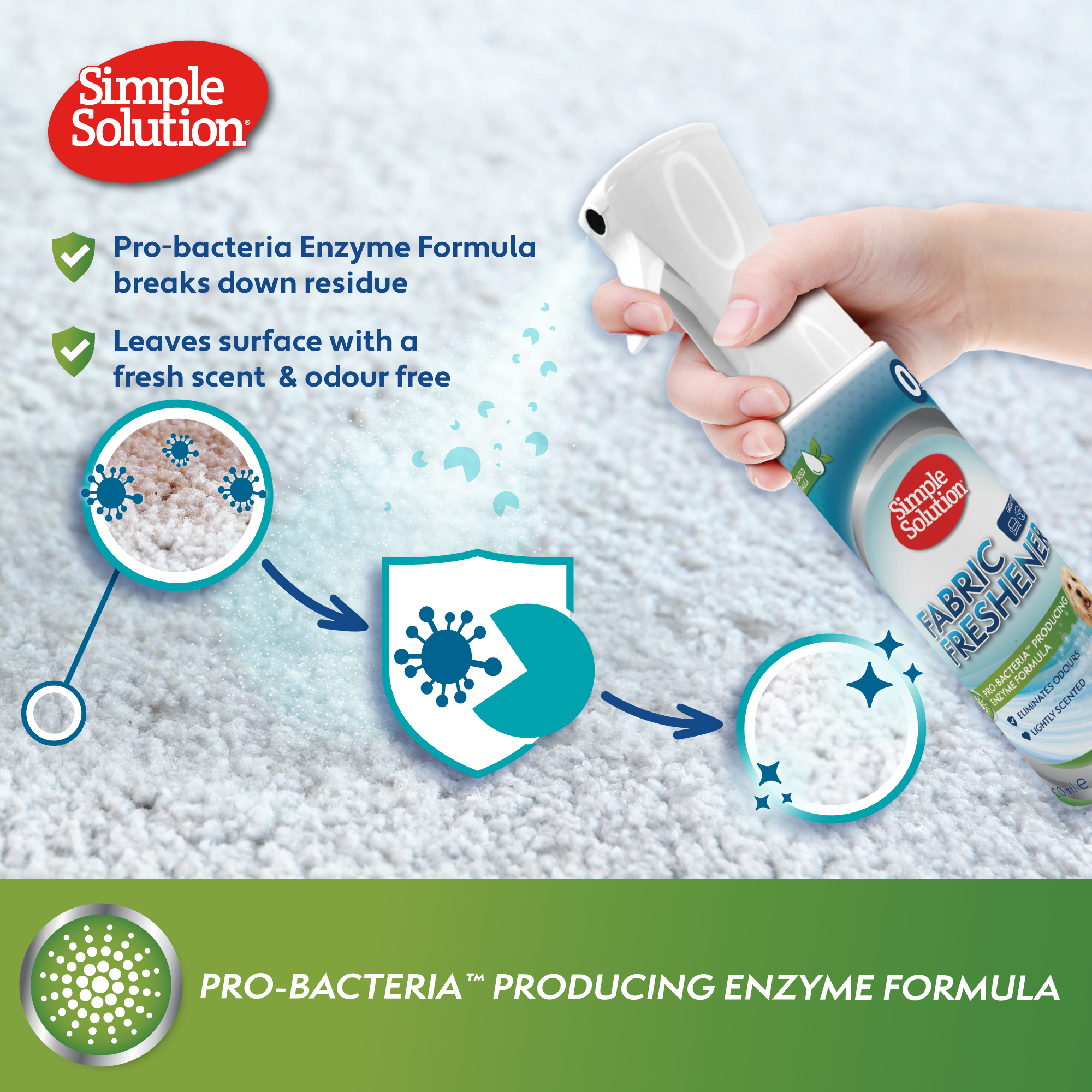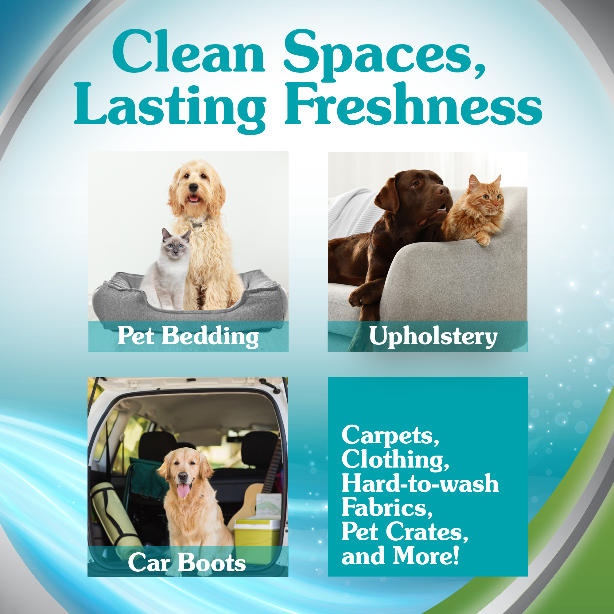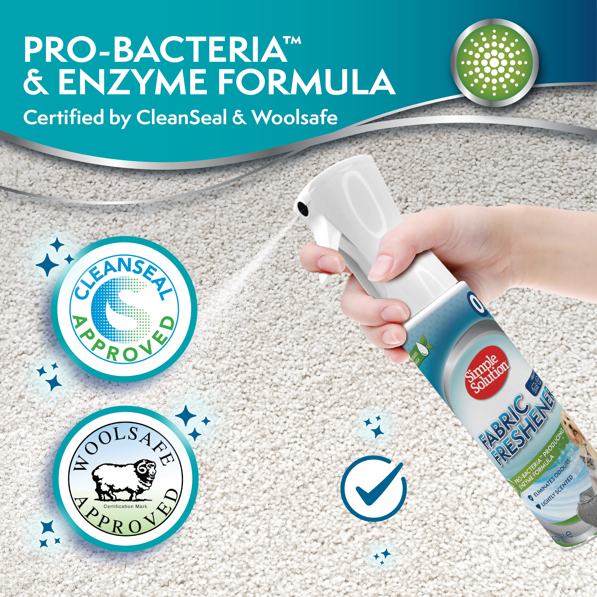 Freshen up hard-to-wash fabrics with a Clean Seal and Woolsafe Certified formula, featuring a new spray technology combined with a proven pro-bacteria-producing enzyme formula. With a light fresh linen scent and no heavy perfumes, it works effectively to remove odours and freshen upholstery, dog bedding, and car boots. It’s approved by the Carpets and Rug Institute and is made to be safe for use around children and pets when applied as directed.