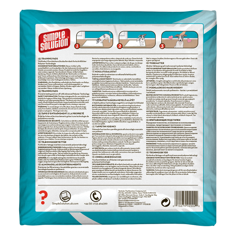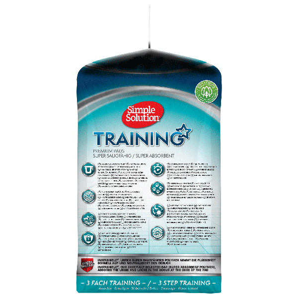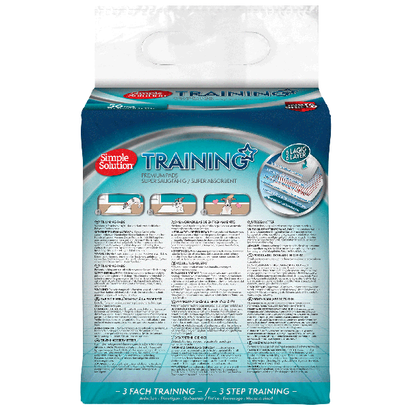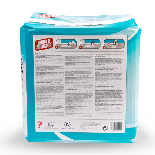 Simple Solution Puppy Training Pads are designed for puppies and dogs of all sizes, ensuring maximum absorbency and leak-proof protection for up to 6 cups of liquid. With odour-neutralising properties and a Wetness Indicator that turns teal when full, you’ll know exactly when it’s time for a change. Thanks to the 3-in-1 Attractant, your pup will be encouraged to use the pad, saving your floors from messes.
