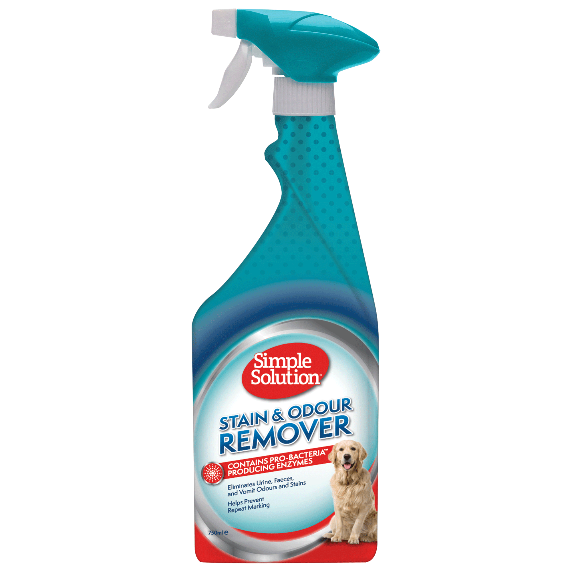 Simple Solution Stain & Odour Remover has a unique formula with Pro-Bacteria™ and enzymes that work together to break down, neutralize, and permanently eliminate stains and odours, while discouraging dogs and cats from making repeat “visits.” Effective on urine, faeces, and vomit, and safe to use on carpet, upholstery, or other water-safe surfaces in your home. Safe around children and pets when used as directed.
