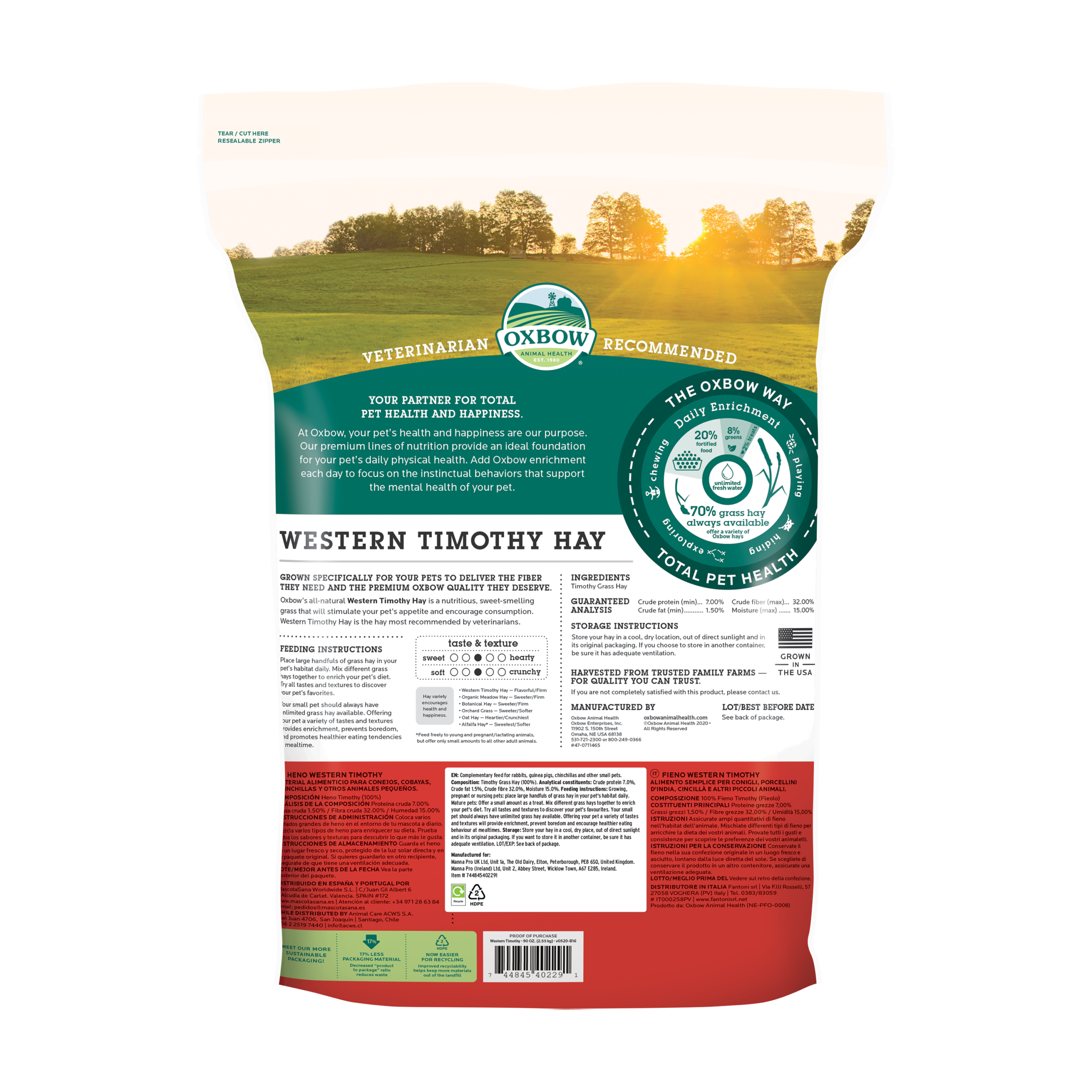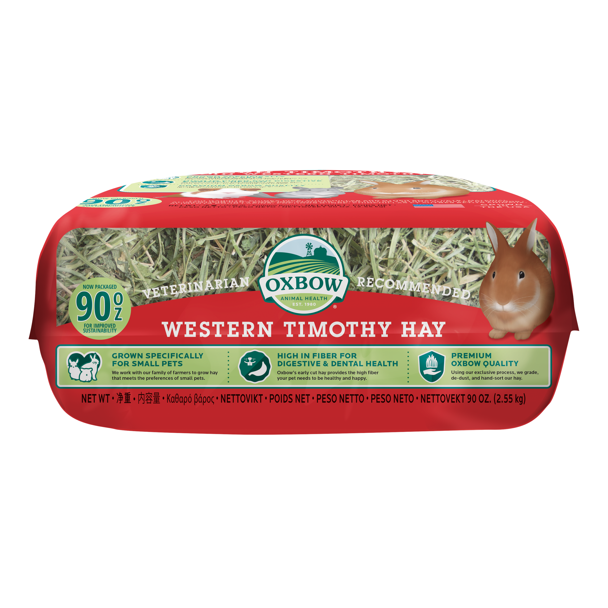 Oxbow’s all-natural Western Timothy Hay is a nutritious, sweet-smelling grass that will stimulate the appetite of your rabbit, guinea pig, chinchilla, or other small pet. Western Timothy is the #1 vet-recommended hay for small herbivores.